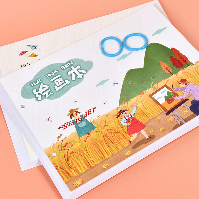 Children's Blank Picture Book Loose-Leaf Book Drawing Paper Drawing Book Art Picture Book A4 Kindergarten Elementary School Students First Grade Students Use Drawing Paper Graffiti Book Hand-Painted Thick White Paper Large Customized