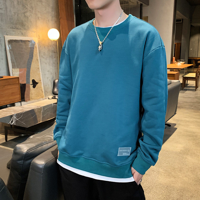 Tide Card Fake Two clothing men's autumn winter 2022 new Korean version trendy loose plus suede thickened round collar 100 lap long sleeves