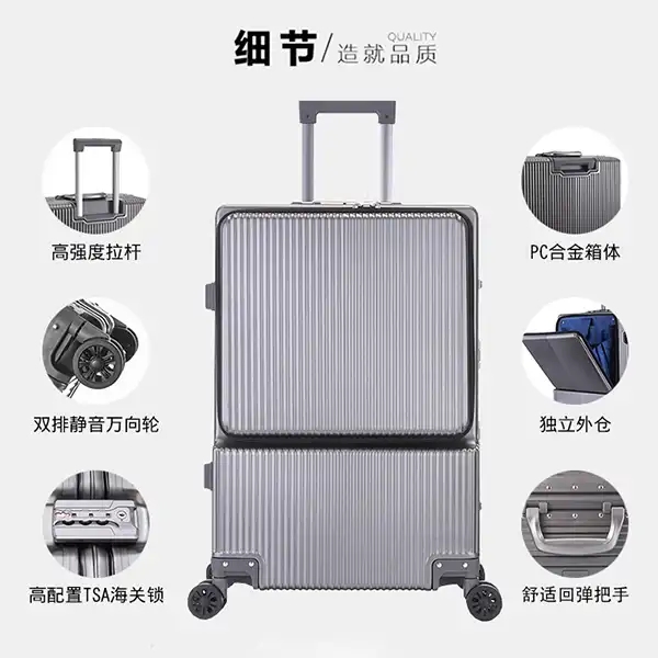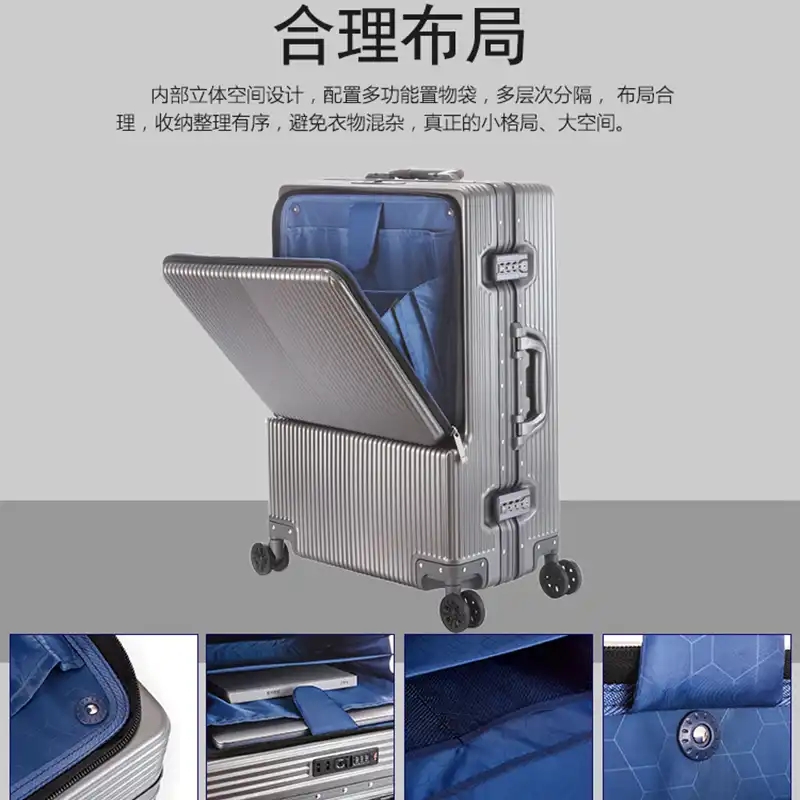 German Crafts Fashion Business Front Computer Suitcase Aluminum Frame Mute Universal Wheels Pull-Lever Box One Leaf Spring