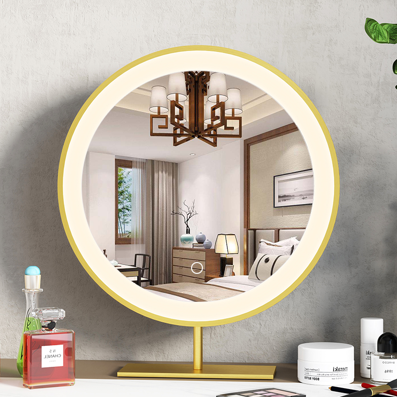 Aluminum alloy desktop red LED makeup mirror red round large-scale complement mirror bedroom comb mirror