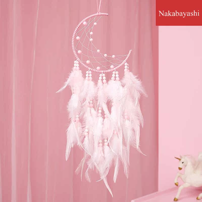 Moon dream net pink series tourist attraction hanging feather pendant car decoration friend gift