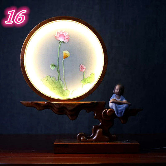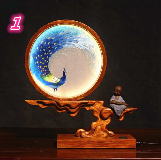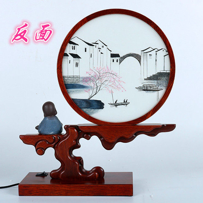 Su Embroidery Pure Handmade Bifacial Embroidered Boutique Pendulum Bed Head Cabinet Table Light Living Room Bedroom Book House Gift