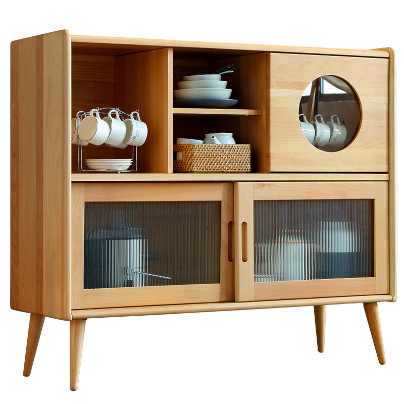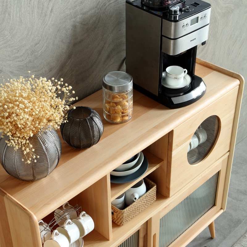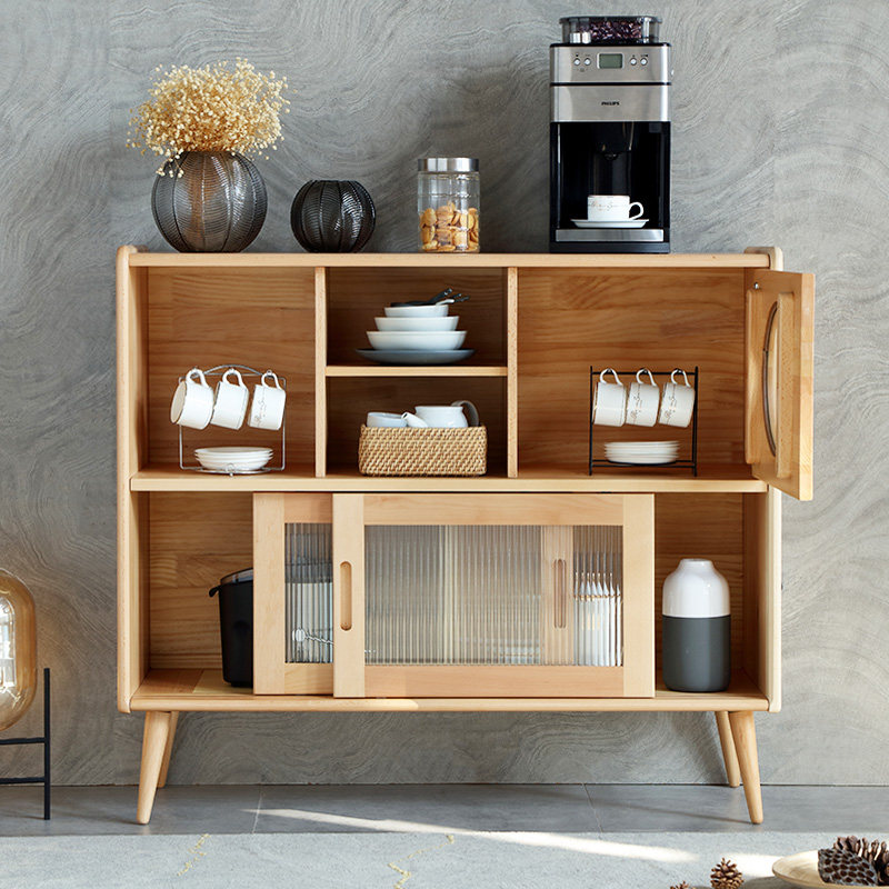 Nordic Beech Wood Dining Cabinet Wine Cabinet Minimalist Modern Full Solid Wood Overall Cabinet Kitchen Containing Cabinet Day Style Home Tea Water Cabinet