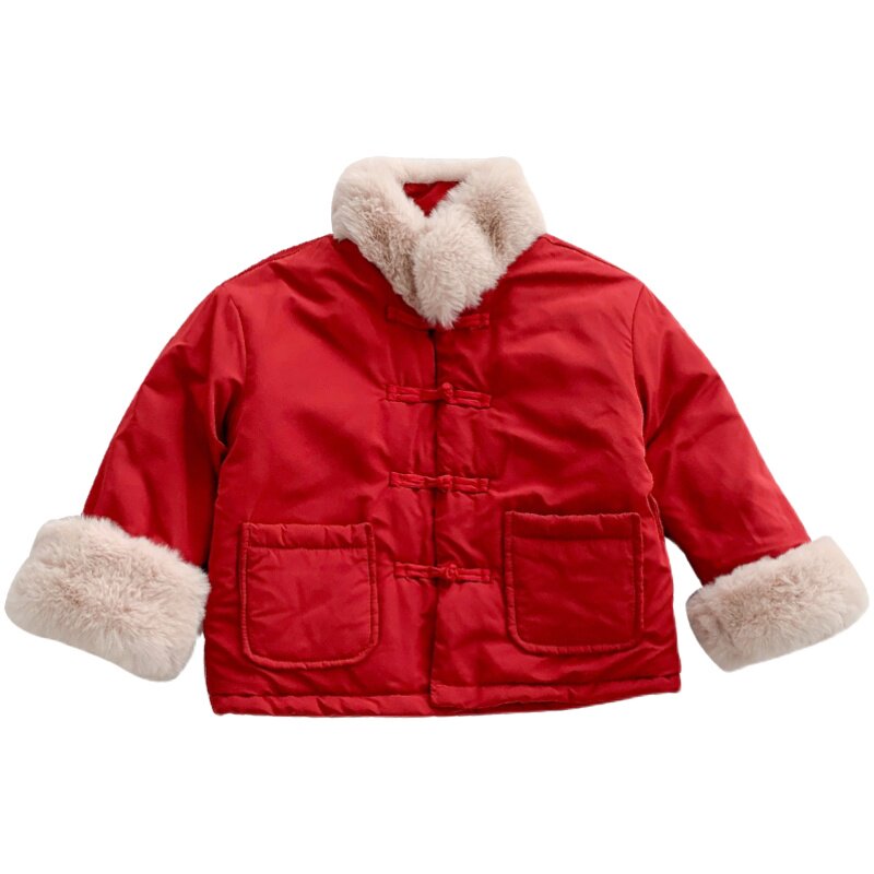 New Year's red cotton suit New Year's qipao cotton suit