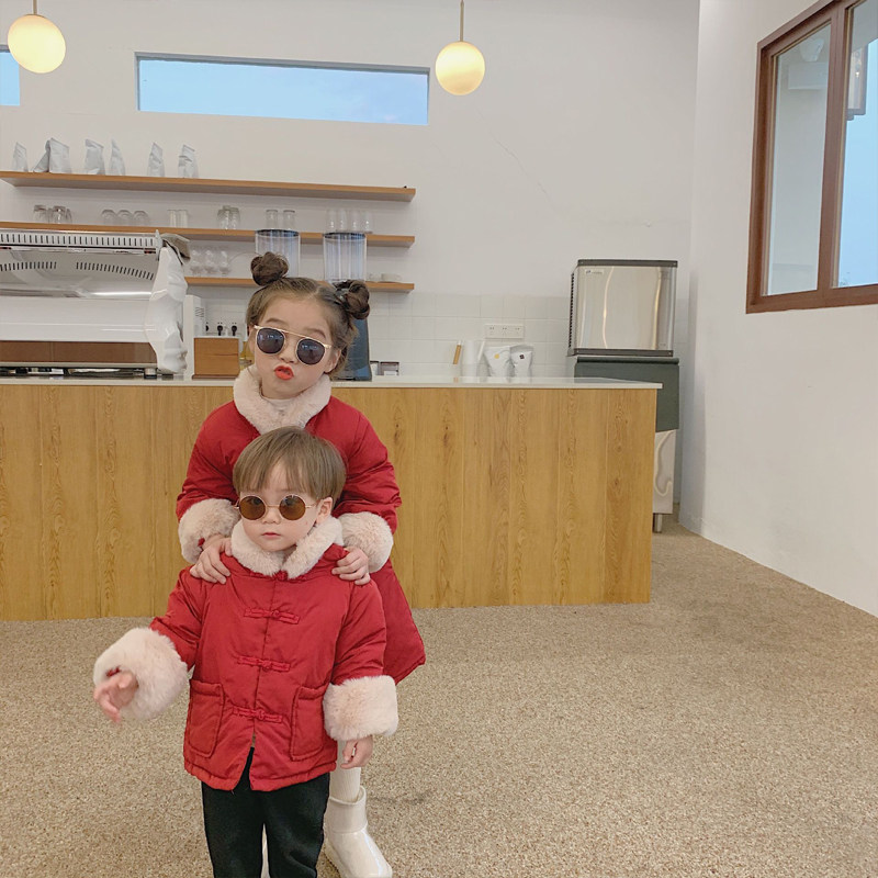 Children's New Year Cotton Cotton Clothing Winter Thickened Male And Female Child Brother-in-law Don Dress Baiyan Annual Cotton Clothing Qipao Chinese Style Chinese Style New Year Dress