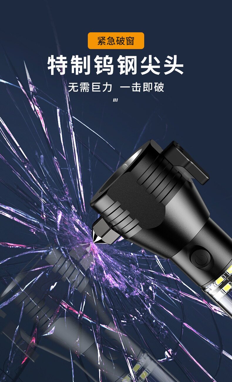 Car Safety Hammer Multifunction Fire Breaking Windows Solar Charging Outdoor Glare Emergency Vehicle ten all-in-one flashlight
