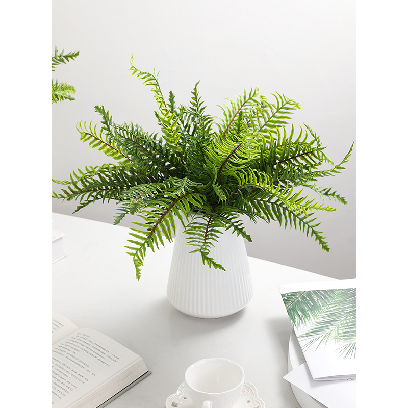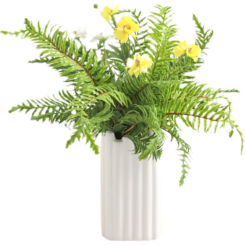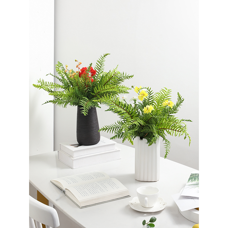 Green 2 branches Fern Leaves 2 branches yellow Chrysanthemum Giant Tooth Vase 3 Branches Fern Leaves in fine grain vase 3 Branches Fern Leaves 1 Branches Red Fine Fruit Black Vinoche Vases
