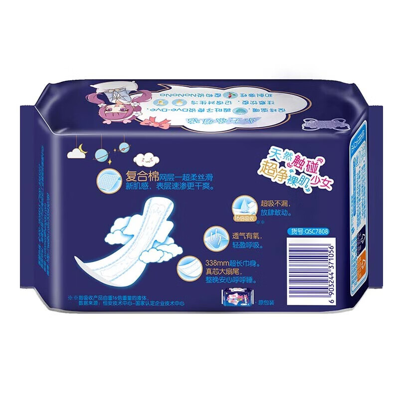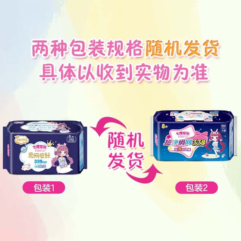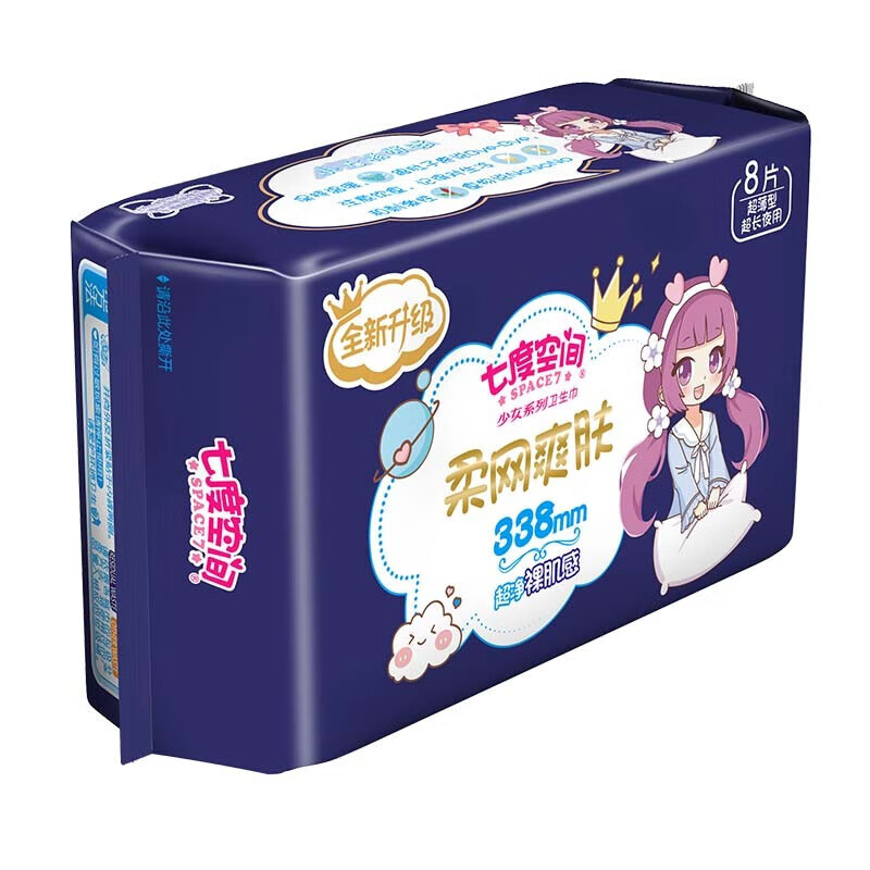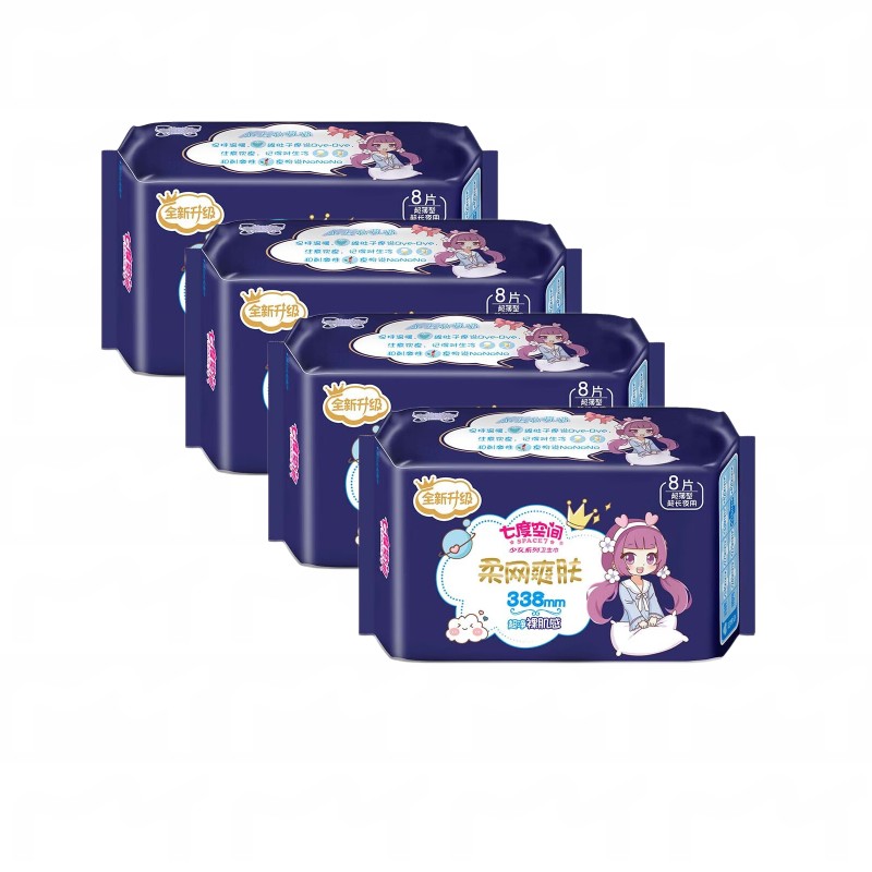 Seven - degree space sanitary towel with a night length 338mm girl silk mesh super thin aunt's wipes 4 pack 8 packs