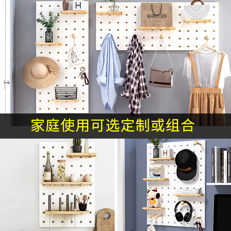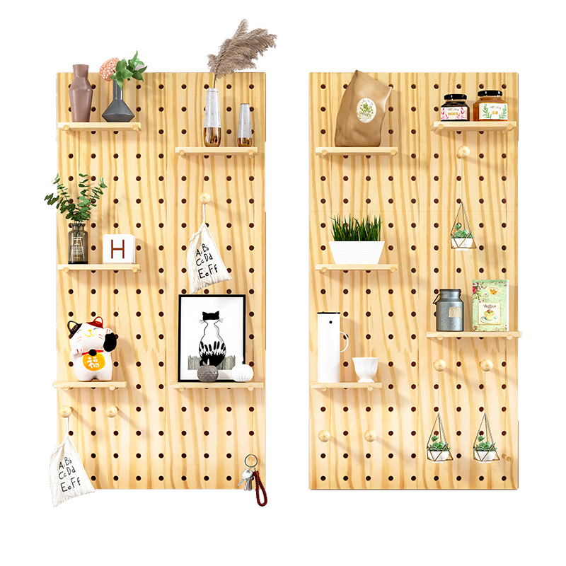 Custom hole board wooden Nordic solid wood punch-free background wall desktop desk storage balcony wall shelf