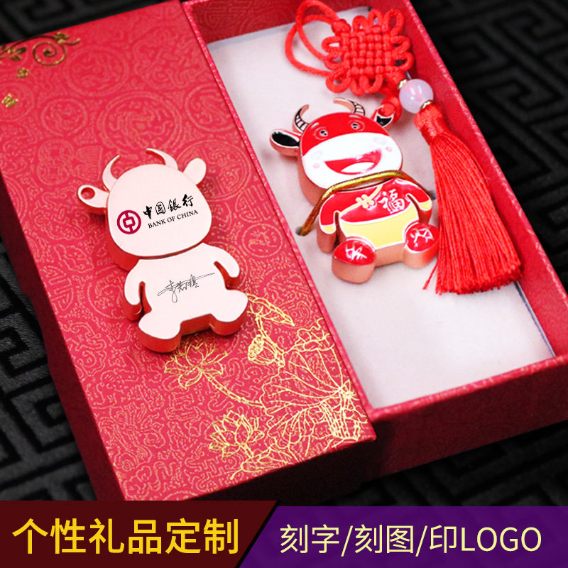 Year of the Ox Commemorative Edition Gift U Disk 64G Custom Logo Lettering High Speed Chinoiserie Retro Gift Box Metal U Disk 32 Creative Personality Business Customized Genuine Gift Zodiac Cow U Disk 64g