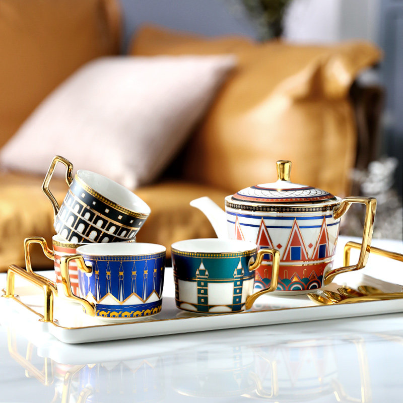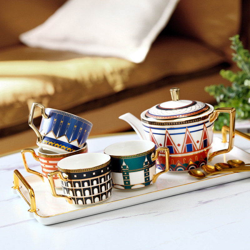 1 cup 1 plate 1 spoon of Tower Bridge, 1 cup 1 cup 1 spoon of the Roman Colosseum 1 cup 1 cup 1 spoon Alexander Lighthouse 1 plate 1 spoon of St. Rossili Coffee Pot Single Tray 4 cups 1 cup of plate impression of China