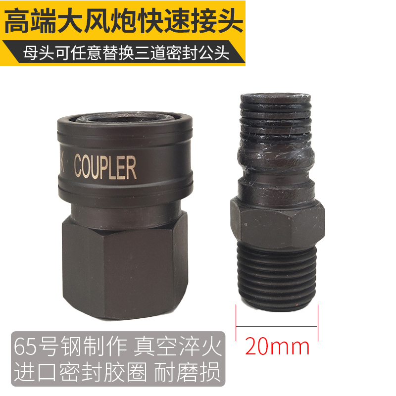 One inch large, medium and small pneumatic wrench male head quick connector universal rotating high pressure straight through large flow male and female head all steel