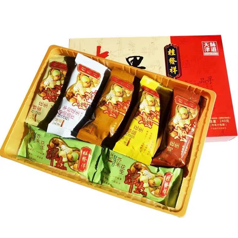 Tianjin Guifa Xiang eighteen Street Ziny fruity 240g gift box Multi-taste Peanut Kernel Fried Goods Casual Snacks