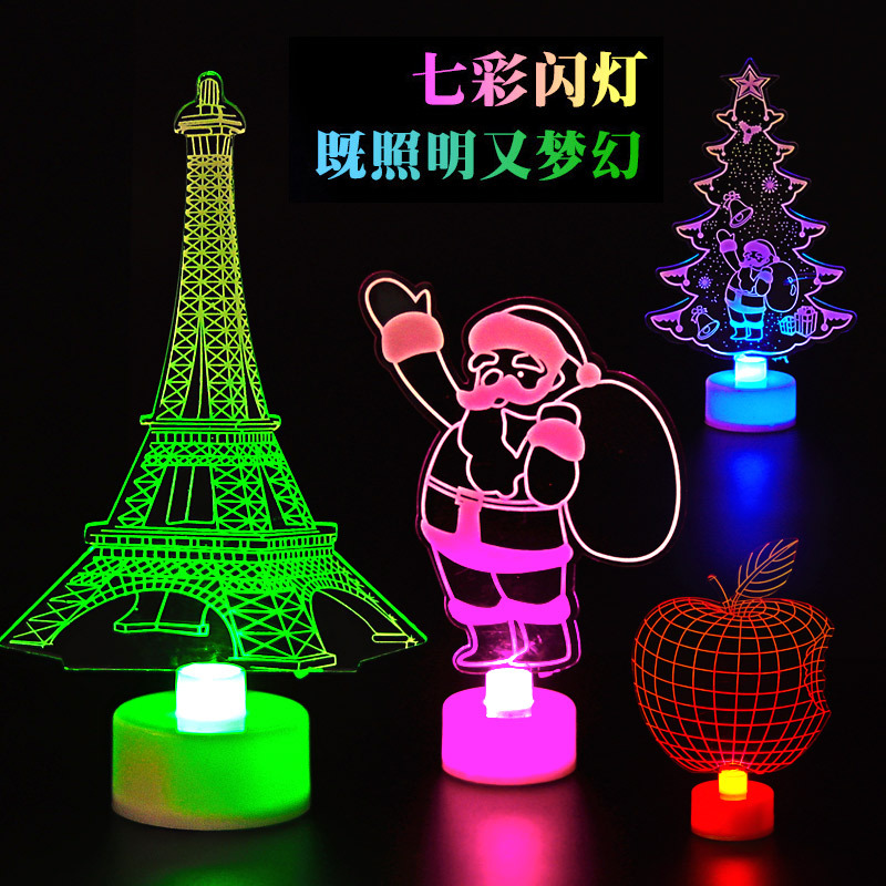 LED Seven Colourful Acrylic Christmas Tree Small Night Light Christmas Snowman Christmas Old Man Apple Tower Luminous Toy
