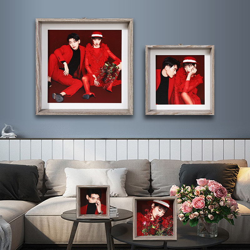 Creative Photo Wall Photo Gallery High-end Customised Nordic Personality Pendulum Bench Inch Wooden Brief Wash Photo Plus Photo Frame Hanging Wall