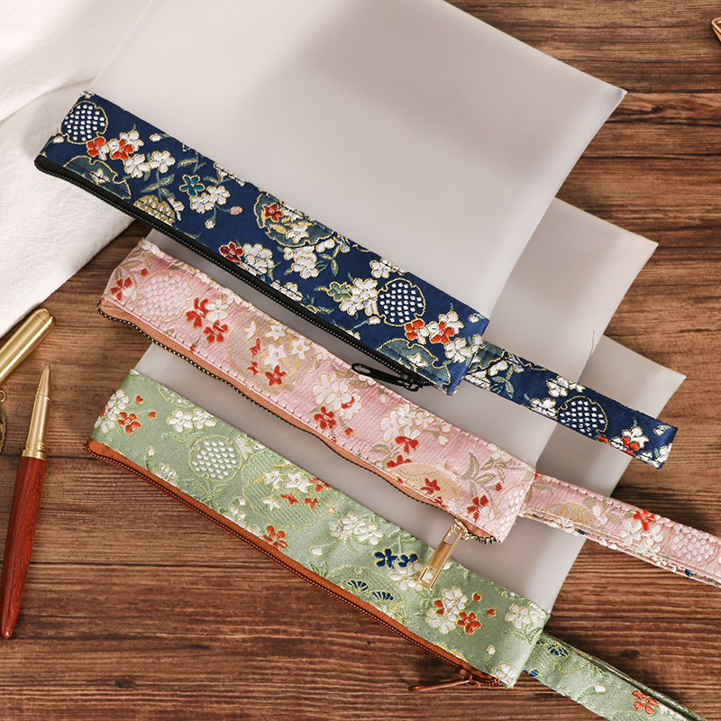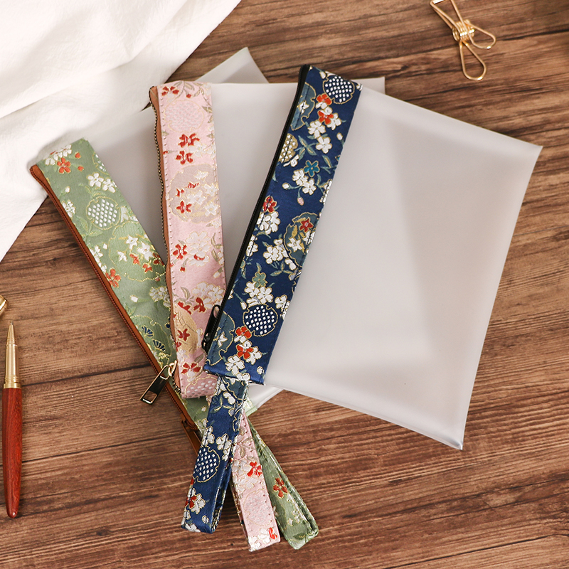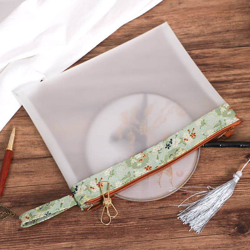 Antique A4 file bag transparent data test paper storage bag student with pull side bag retro Chinese style large-capacity information bag bill handbag A5 folder cosmetic bag small fresh stationery bag