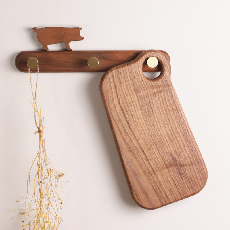 Wood said)Meng Meng black walnut food board Solid wood side dish board Creative cute mini cutting board Wooden chopping board