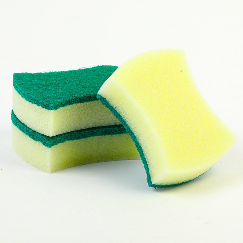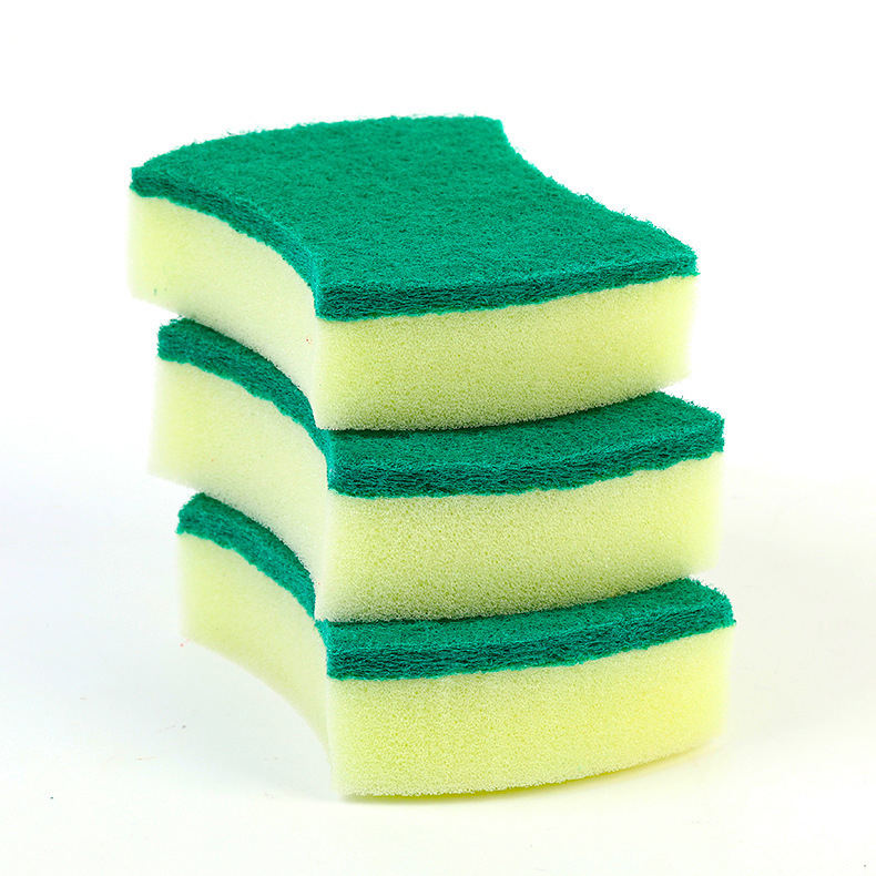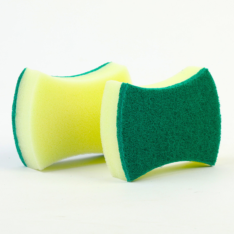 Small brute waist-shaped dishwashing sponge scrub green with sand and white cloth kitchen dishwashing clean magic ruby-sided decontamination