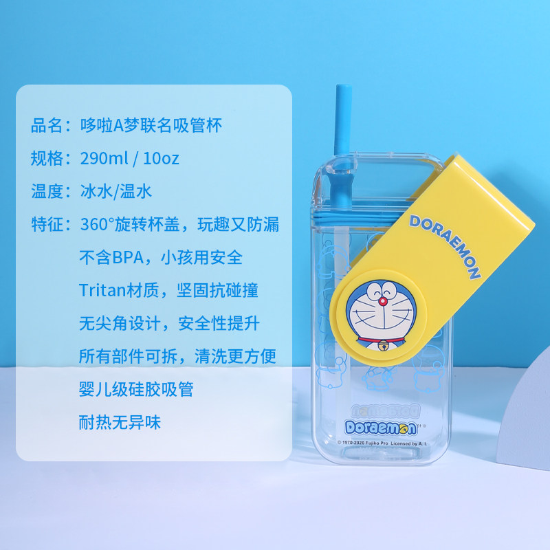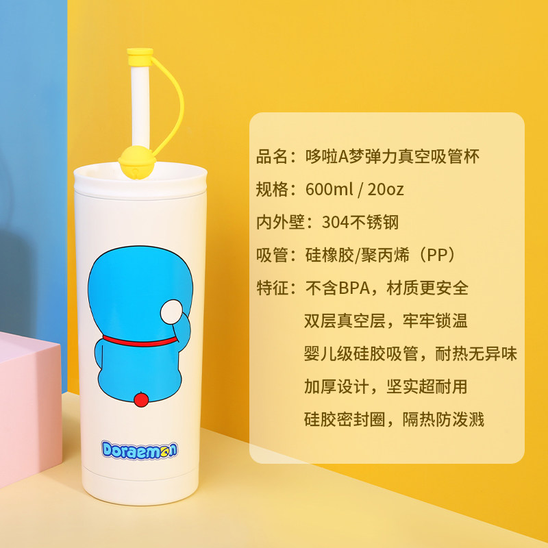 Doraemon-colorful juice cup-Sky blue Doraemon-colorful juice cup-letter Doraemon-vacuum large capacity straw cup Doraemon-vacuum double
