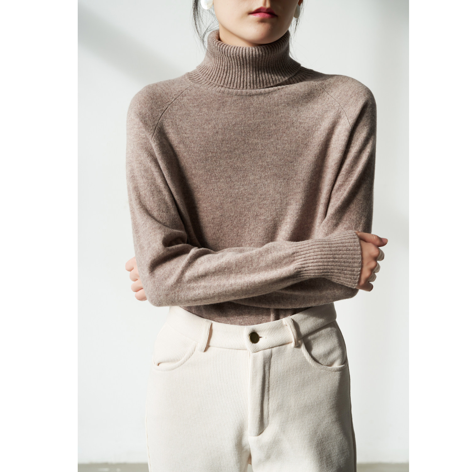 SS STUDIO Tri-color Tsuen Goat Sweater High Collar Hitch Bottom Stitch Cardiovert Women Sweaters Autumn Winter Foreign blouses