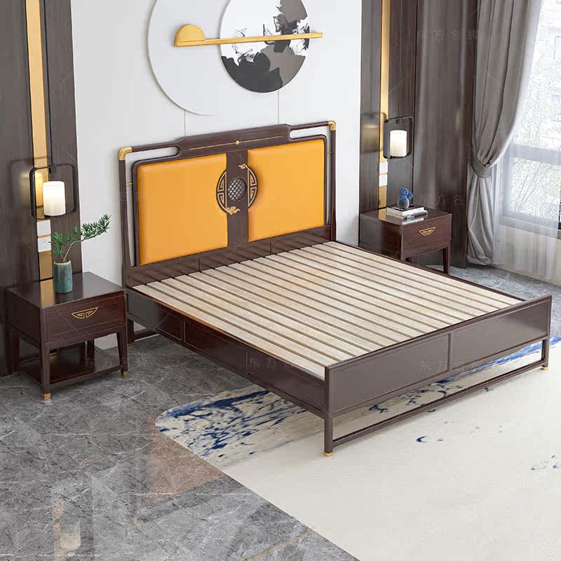 New Chinese-style solid wood bed 1.8m ebony wood bedroom double bed 1.5m modern minimalist small apartment master bedroom wedding bed