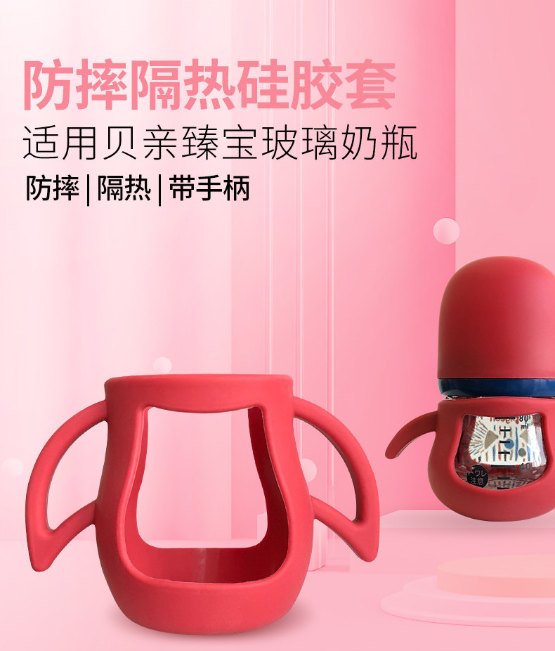 Beiqin baby bottle anti-fall cover suitable for Beiqin wide-caliber glass bottle Zhenbao with handle silicone protective cover accessories