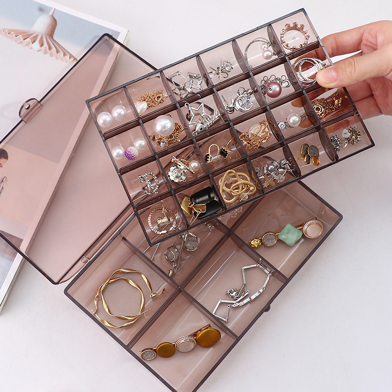 Jewelry earrings storage box with lid dustproof large capacity compartment earring stud earring jewelry box ring double layer jewelry box