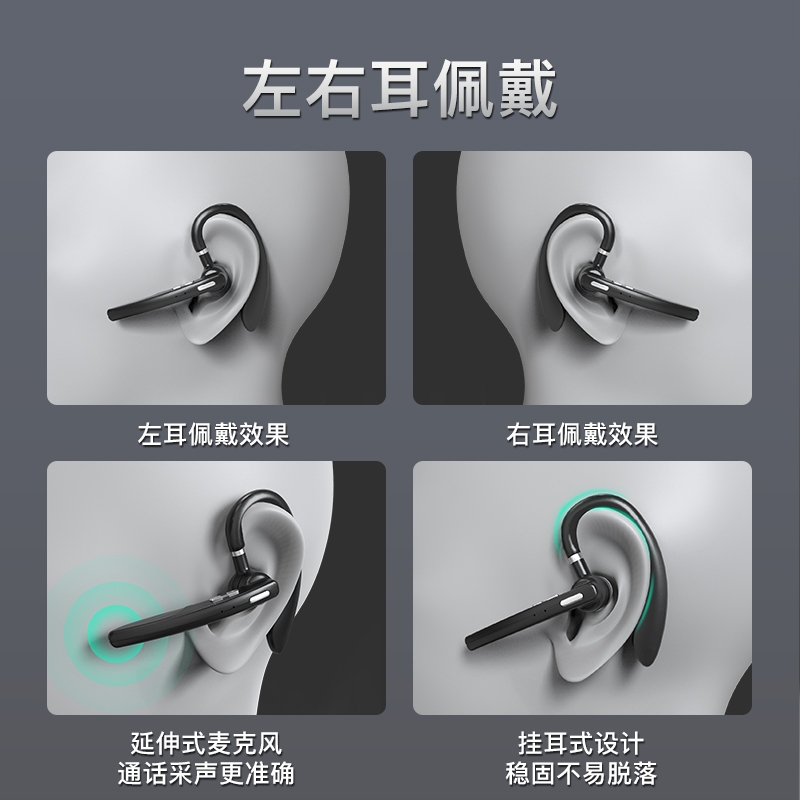 Bluetooth headphones wireless extra-long great power double noise reduction applicable to Apple Xiaomi Huawei oppovivo Listen Goeear Ear Hanging Driver Private Single Ear Super Long Standby