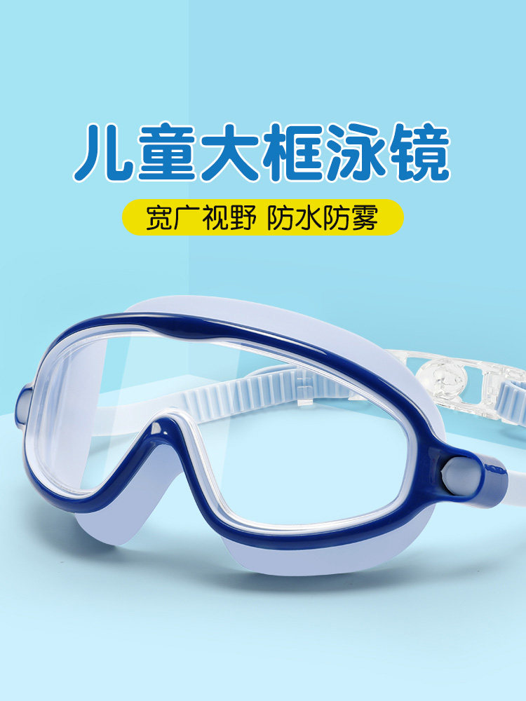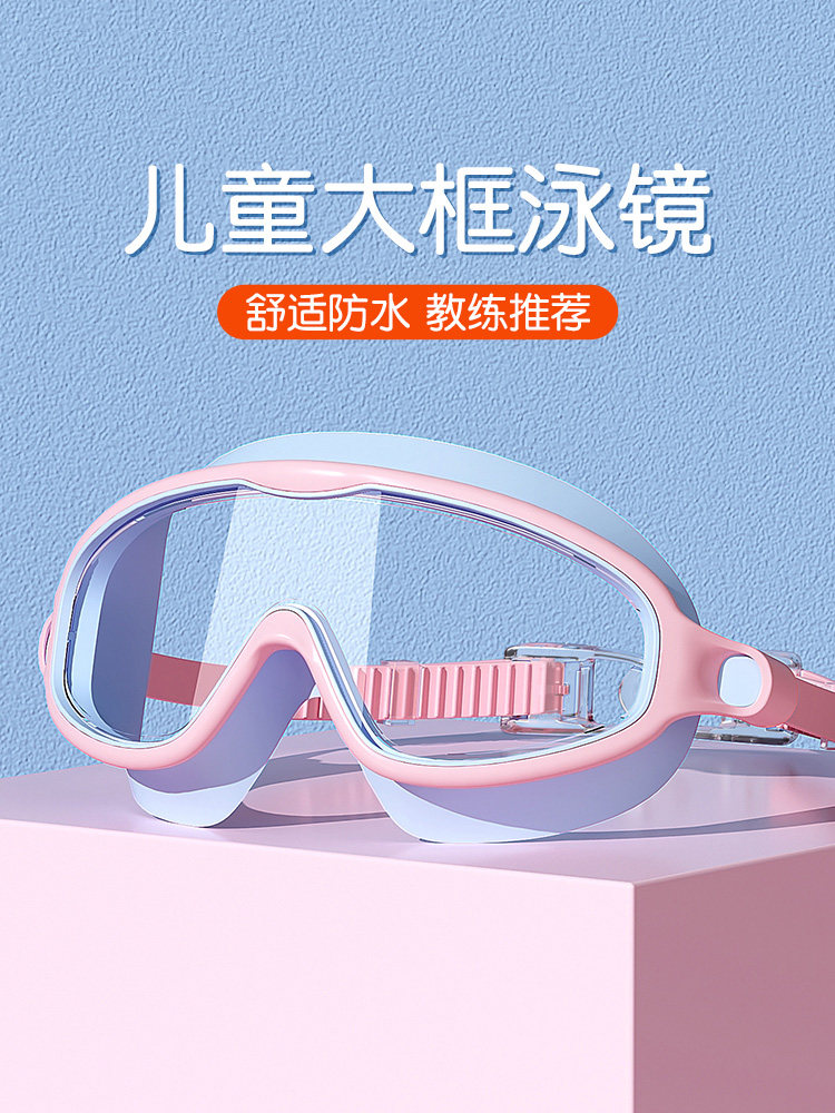 Children's large frame swimming goggles swimming cap suit waterproof diving mirror male and female child baby transparent professional swimming glasses equipment