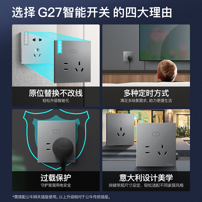 Bull Wall Switch Socket G27 Smart ZigBee Wireless Switch Voice APP Control 86 Type Concealed