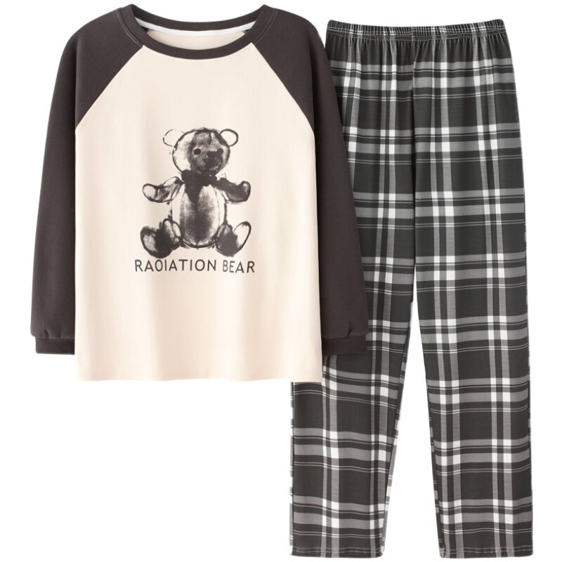 Pure Cotton Lovers Pyjamas Women's Spring Fall Loose Leisure Extractable Outwear Long Sleeve Cartoon Men's Home Conserved Two Style Suits