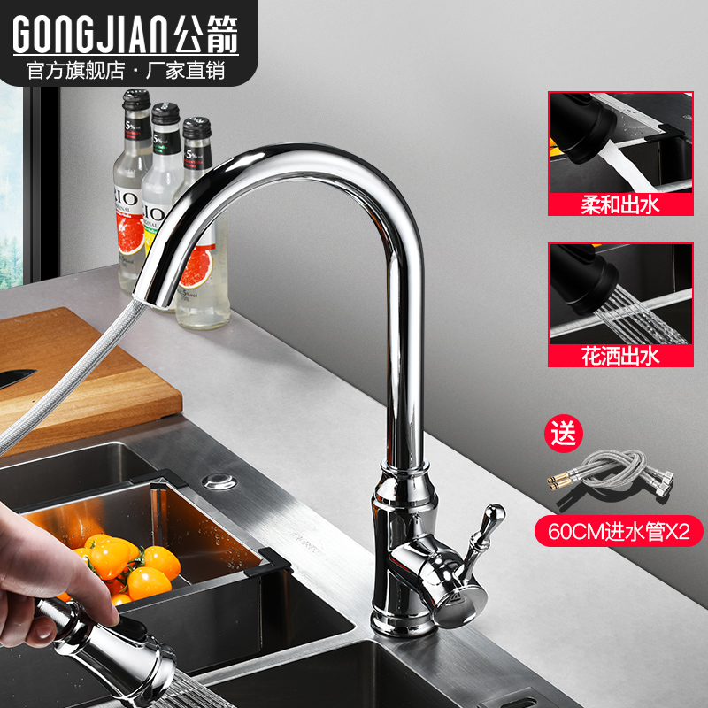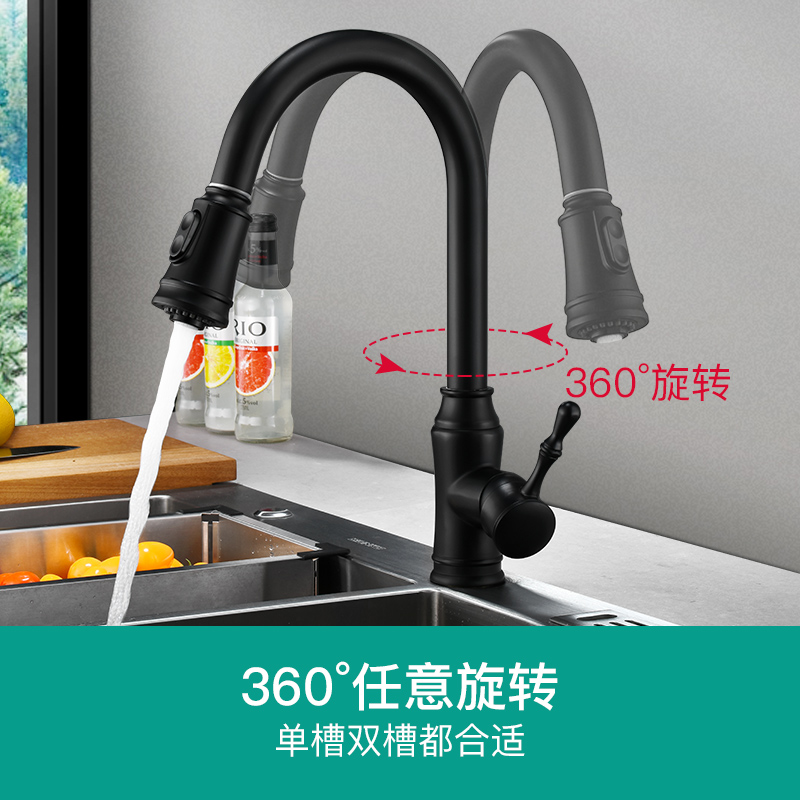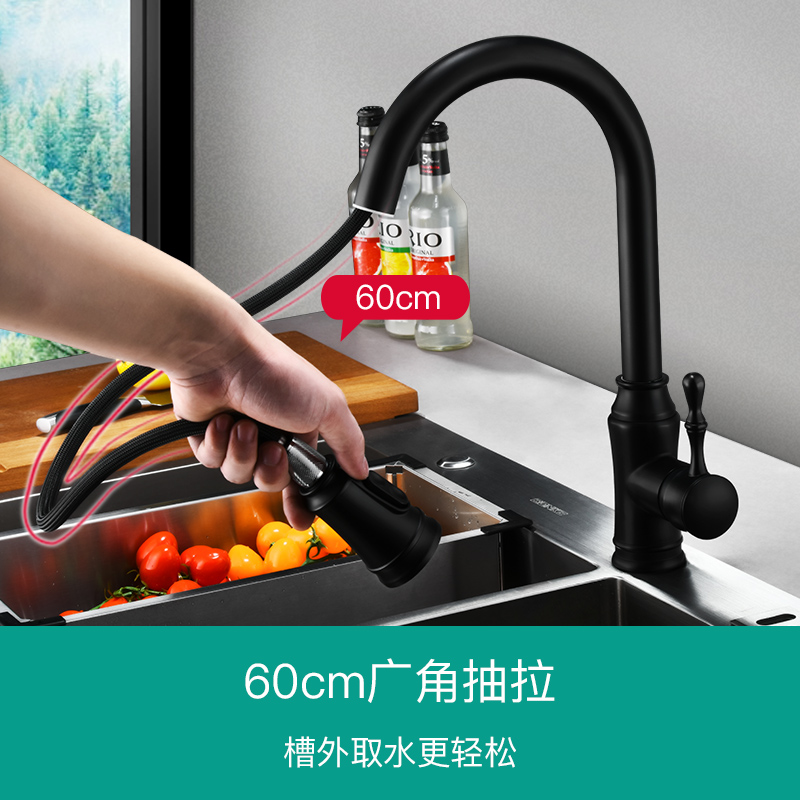 All copper kitchen faucet Black hot and cold water wash basin sink sink sink splash proof pull type basin faucet