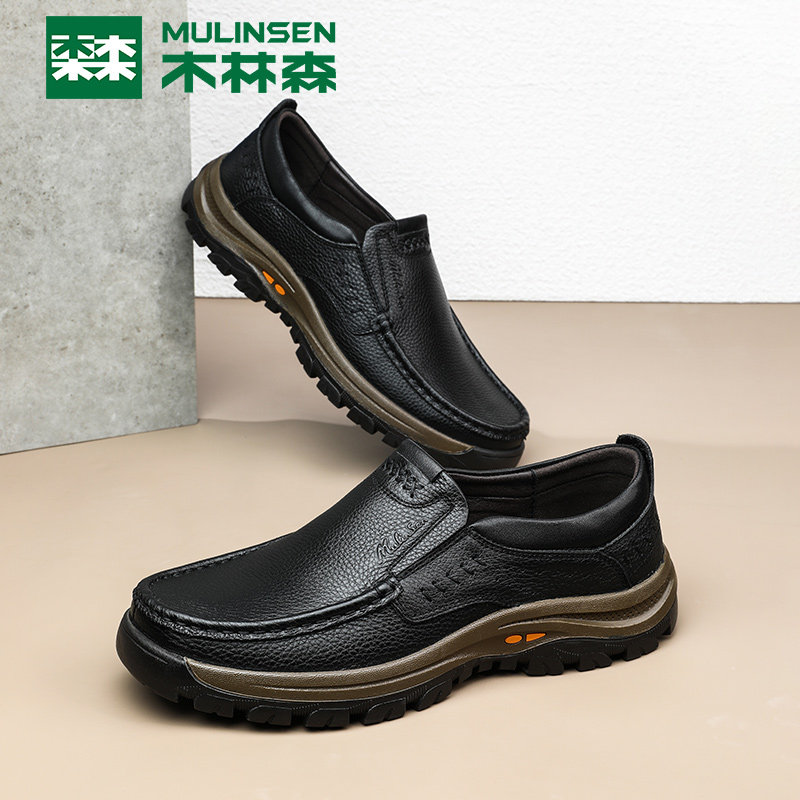 Wood Linson Men Shoes Spring New Genuine Leather Breathable Business Casual Leather Shoes Cow Leather Thick bottom middle-aged Dad shoes 100 lap