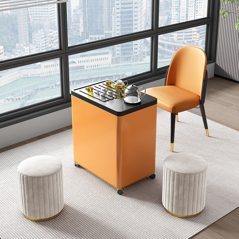 Light luxury burning stone balcony tea car kettle integrated kung fu tea table modern mobile tea table home small apartment