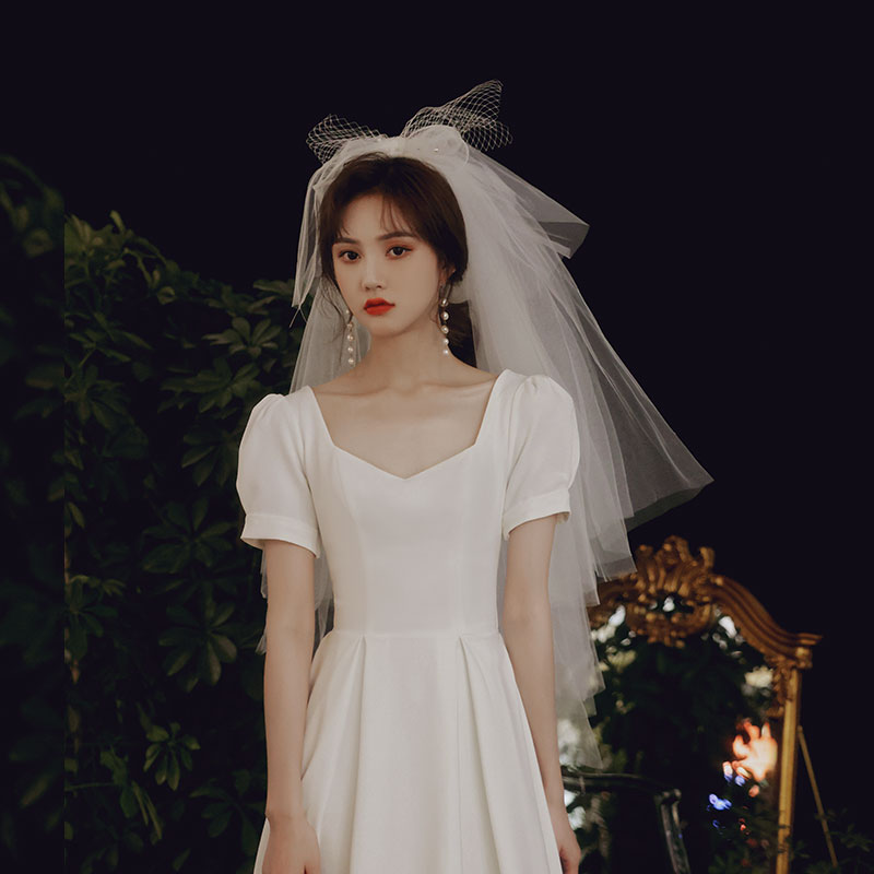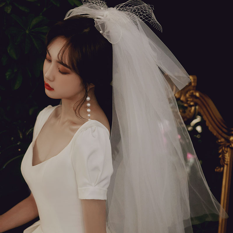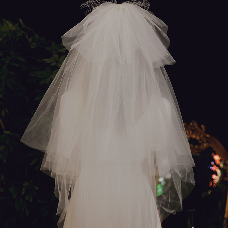 Bridal veil multi-layered fluffy plain veil wedding dress short veil forest butterfly wedding ceremony travel photograph licensed headdress