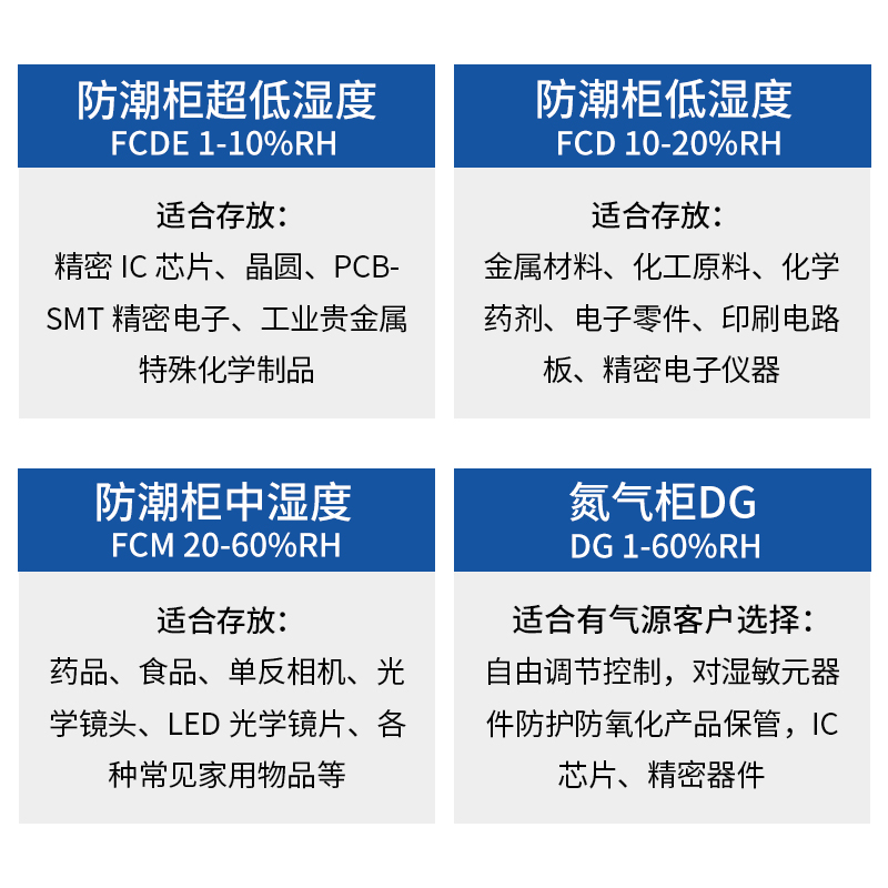 FCM(20-60%RH)FCD(10-20%RH)FCDE(1-10%RH)DG(1-60%RH)