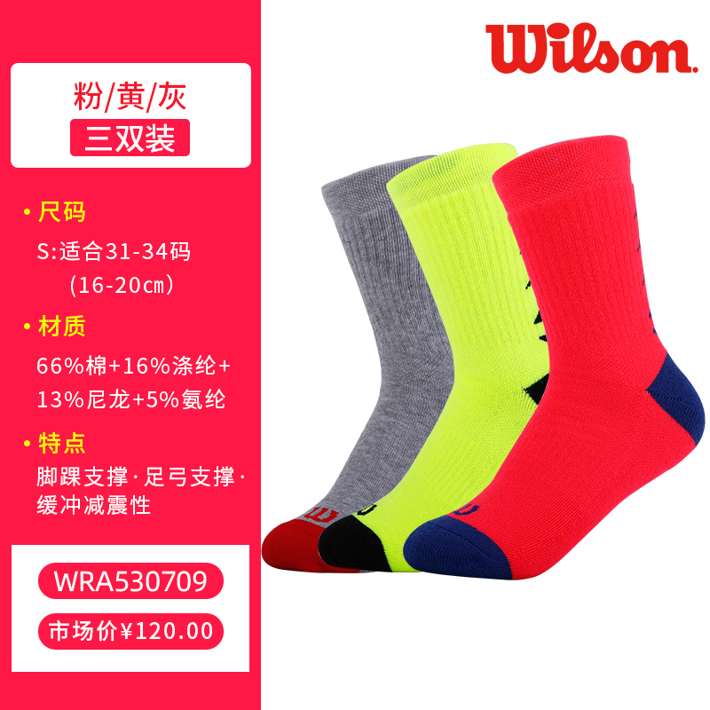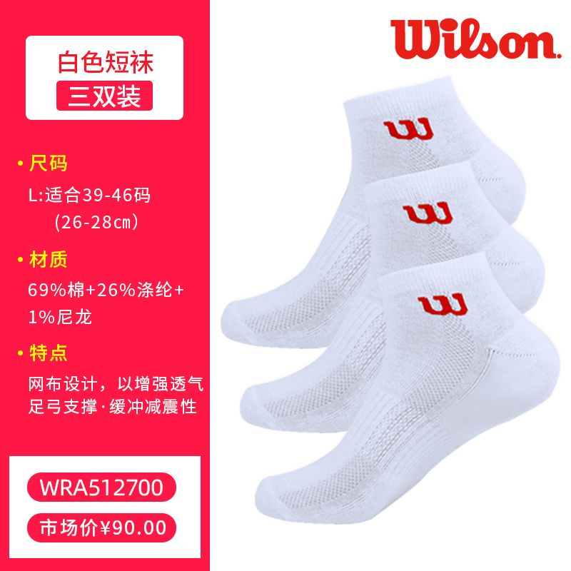 Wilson Wilson men's and women's cotton socks long, medium and short tube socks towel bottom sports sweat-absorbing comfortable tennis socks