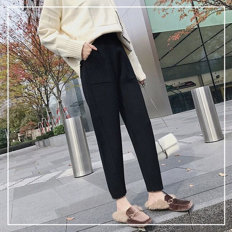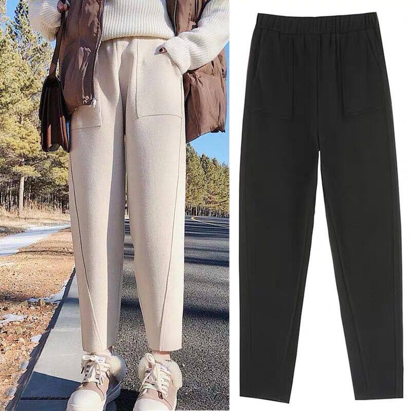 Woolen pants, harem pants, lob pants, large size, fat mm, thin, all-match, loose, straight tube, high waist, wide pants, women's autumn and winter