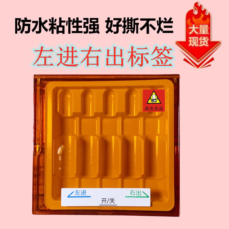 Type A red injection box label high risk 100 stickers on the front and side