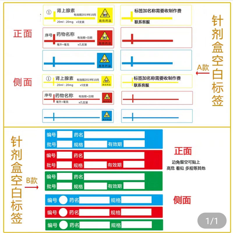 Type A green injection box label high risk 100 stickers on the front and side