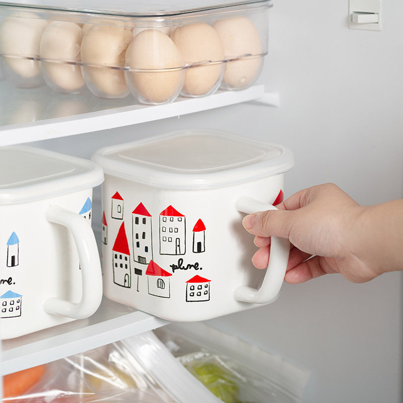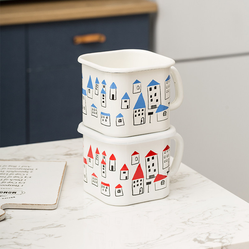 BOBAO Japanese multi-function square enamel cup dormitory instant noodle cup baking abrasive household crisper storage box