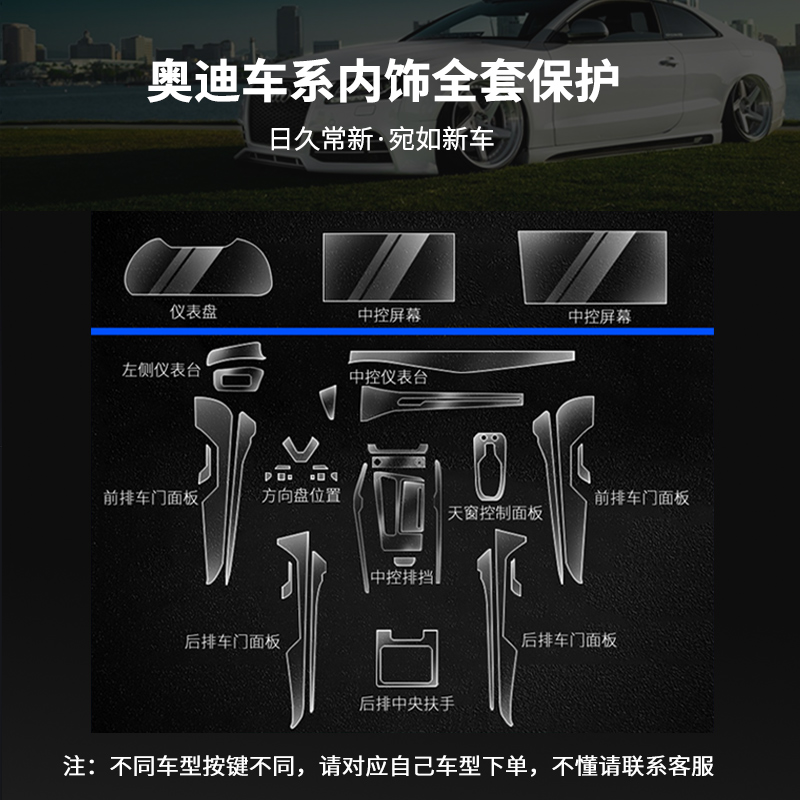 22 22 Audi A6L A8L A8L Q7 Q5L A4L A4L Q3A3 Q3A3 Interior protective film with steel-controlled steel screen TPU adhesive film