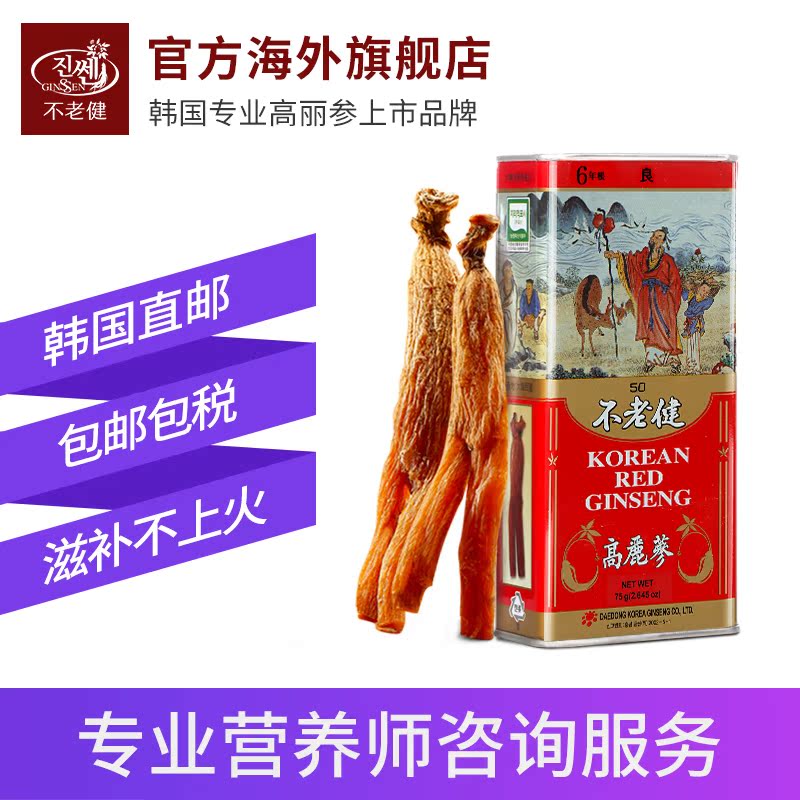 Not Laojian Gao Liam 6 years Genred ginseng South Korean Ginseng Box East Citi Ginseng Ginseng ginseng 50-75g