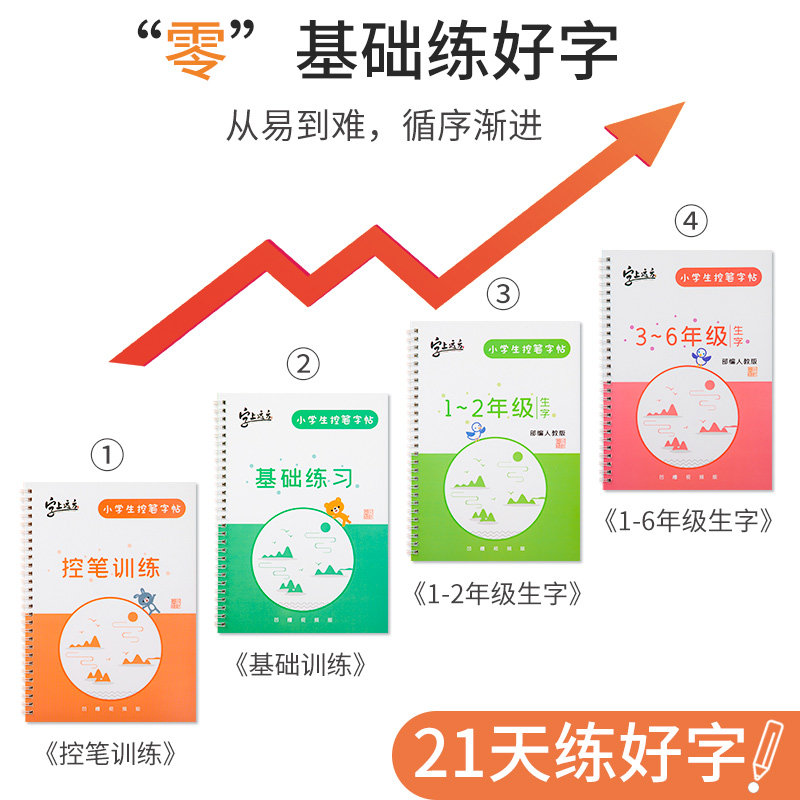 Primary students train pen and pen training words full set of first grade beginners teaching edition synchronous hard pen calligraphy practice children's entry kit 2346th grade Zikai Artists speed into 21 days groove brush brush