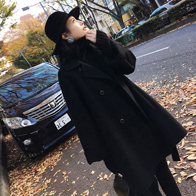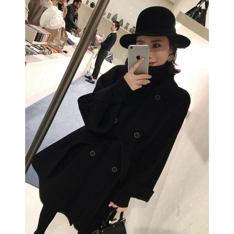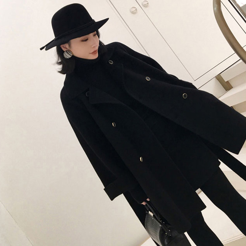 Black woolen coat women's short small autumn and winter 2021 new Korean cotton padded woolen coat