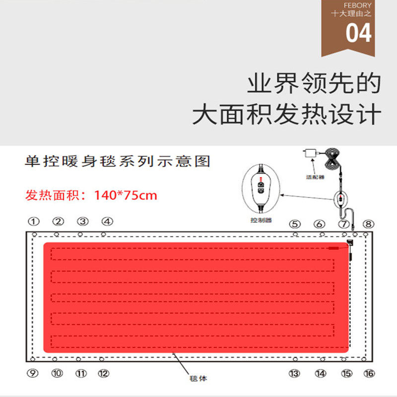 Febory thermostat electric blanket 24V car office household 110-220V large truck bus single person heated
