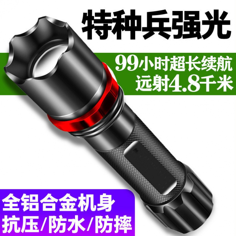 New rechargeable LED flashlight usb charging ultra-bright long-range small mini portable multi-functional household durable lamp