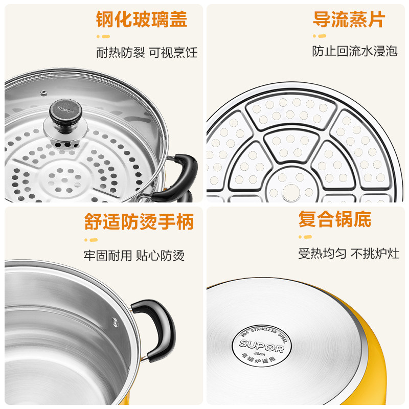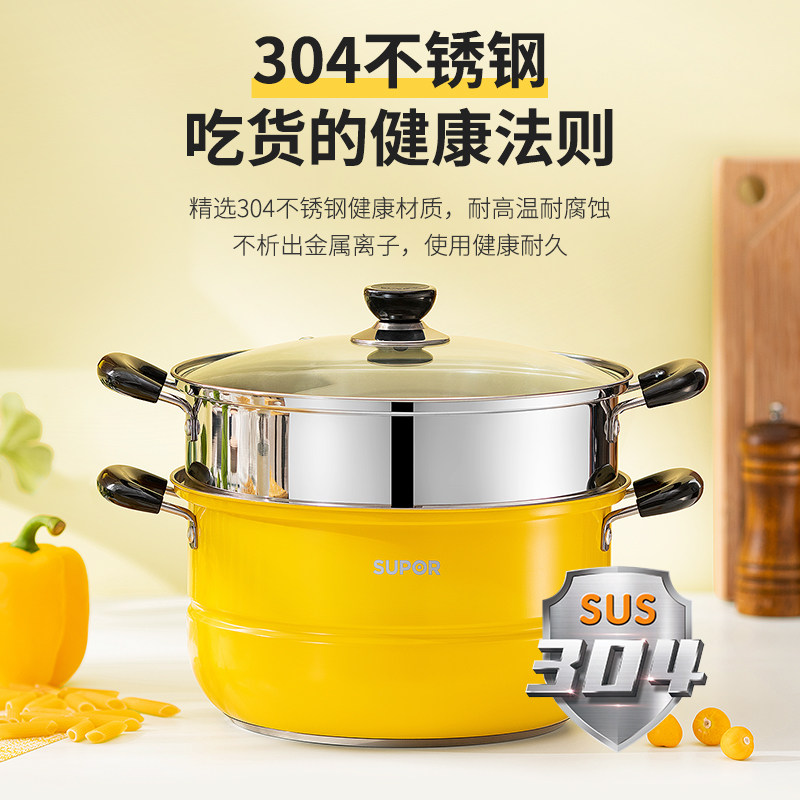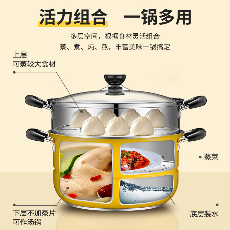 Supoir steamer 304 stainless steel home steam cage two-floor double layer thickened retro-bottom gas oven induction