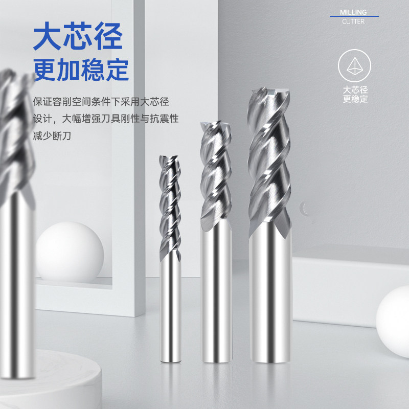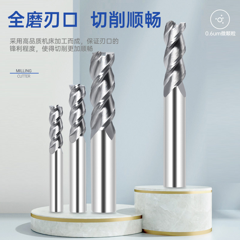 55-degree aluminium use milling cutter 3-edge non-coated CNC tungsten steel milling cutter hard alloy high light mirror three-edge vertical milling cutter