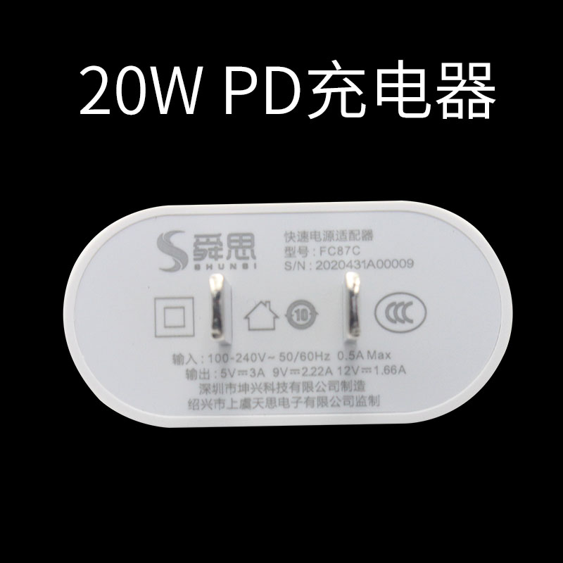 PD20W single charging head PD20W charging head double head type-C valley Gothic wire PD20W charging head TYPE-C transL line white Type-C turn L apple P